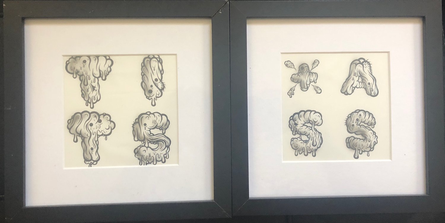 Two 5x5” original inks by Brooklyn legend buff Monster frames included
